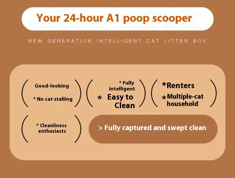 Feature: Odor control, Comfortable, Easy to Clean, Large Capacity, Automatic Cleaning